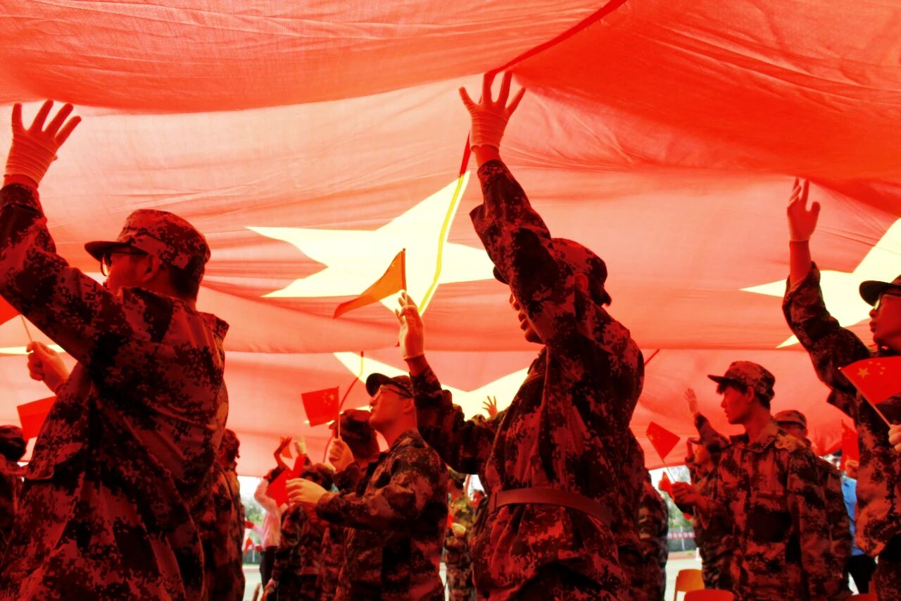 口号嘹亮震天响步伐有力踏前方一腔热血筹壮志旌旗所指披荣光