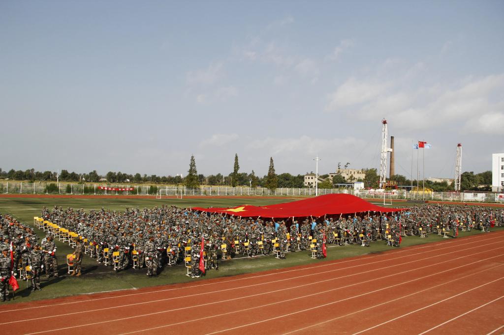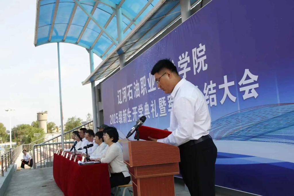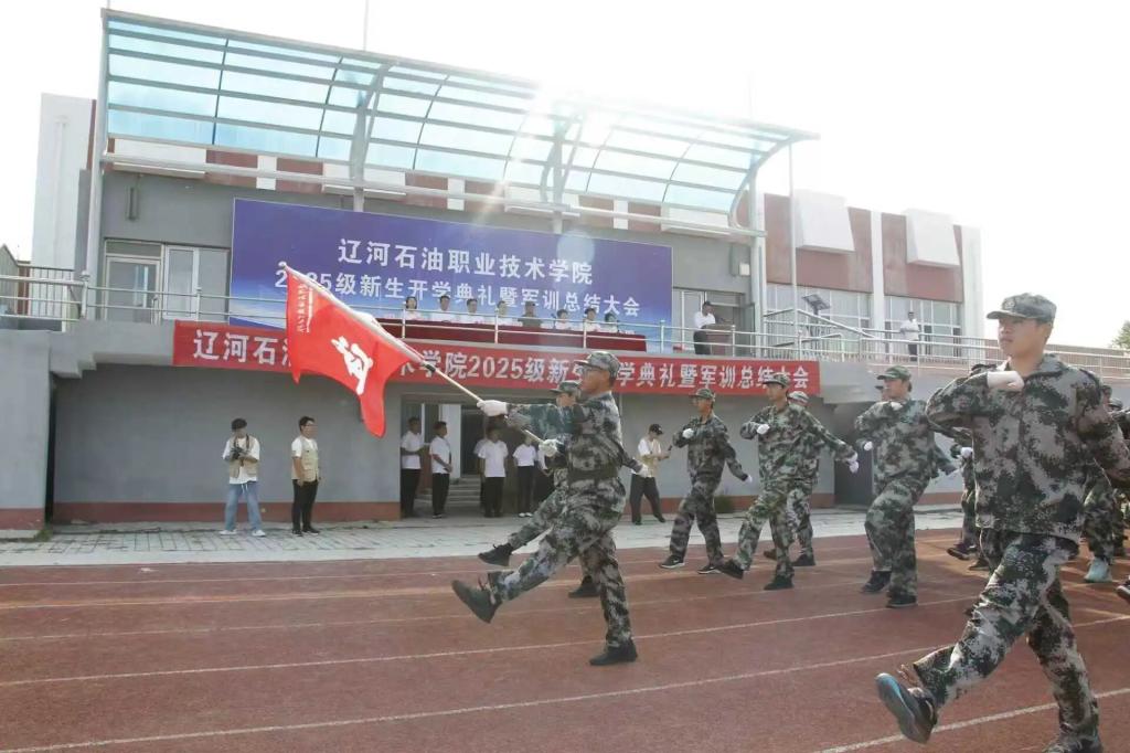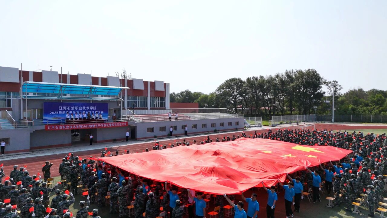 2025年9月14日上午8:00辽河石油职业技术学院2025级新生开学暨军训总结大会正式开始全体起立奏唱国歌眼神坚毅而又庄重,站姿笔直而又昂扬2025级的辽油职院的新生以最为饱满的姿态展现为期14天的军训成果现场恢宏壮观,他们整装待发