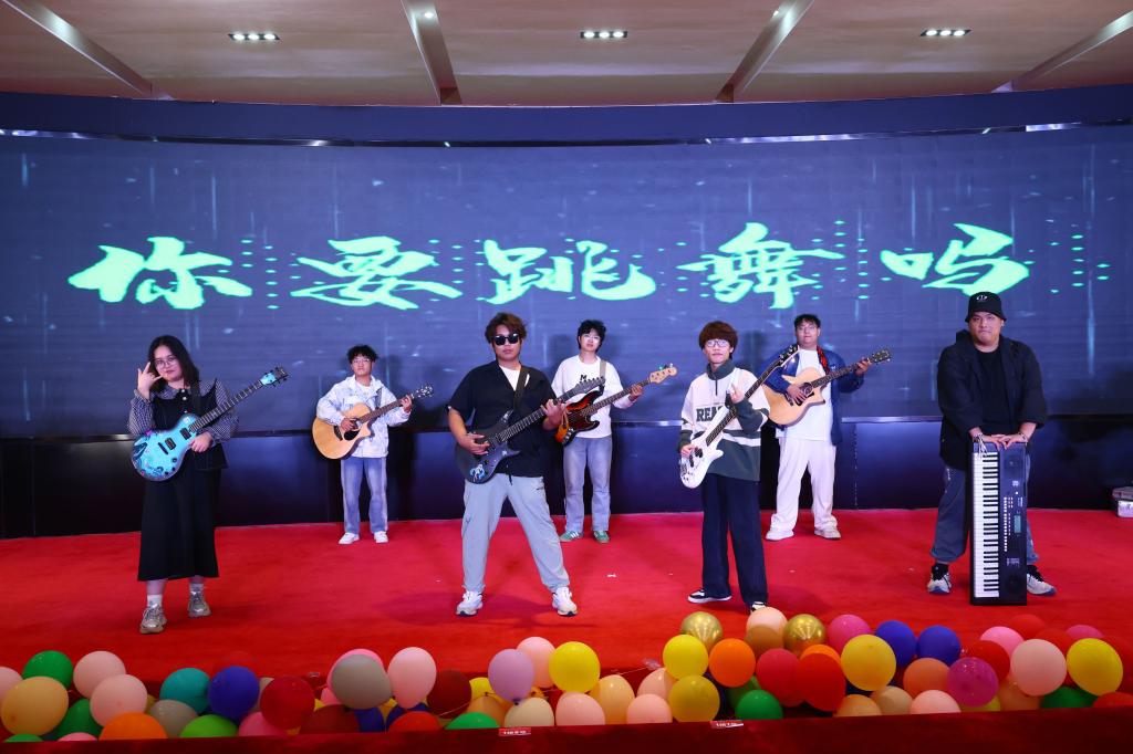 街舞《热烈》以极具爆发力的舞姿瞬间点燃全场,随后男生合唱《都选C》则以诙谐洒脱的演唱,道出了一代人的青春宣言。吉他乐队奏响《你要跳舞吗》,以奔放的节奏将这股蓬勃朝气推向高潮。女生合唱《凑热闹》延续了这份欢快的氛围,现场气氛热烈欢腾。歌伴舞《春风十万里》意境恢宏。晚会在歌曲《我爱你中国》中落下帷幕,为整场演出画上圆满句号,彰显了青年一代深厚的家国情怀。