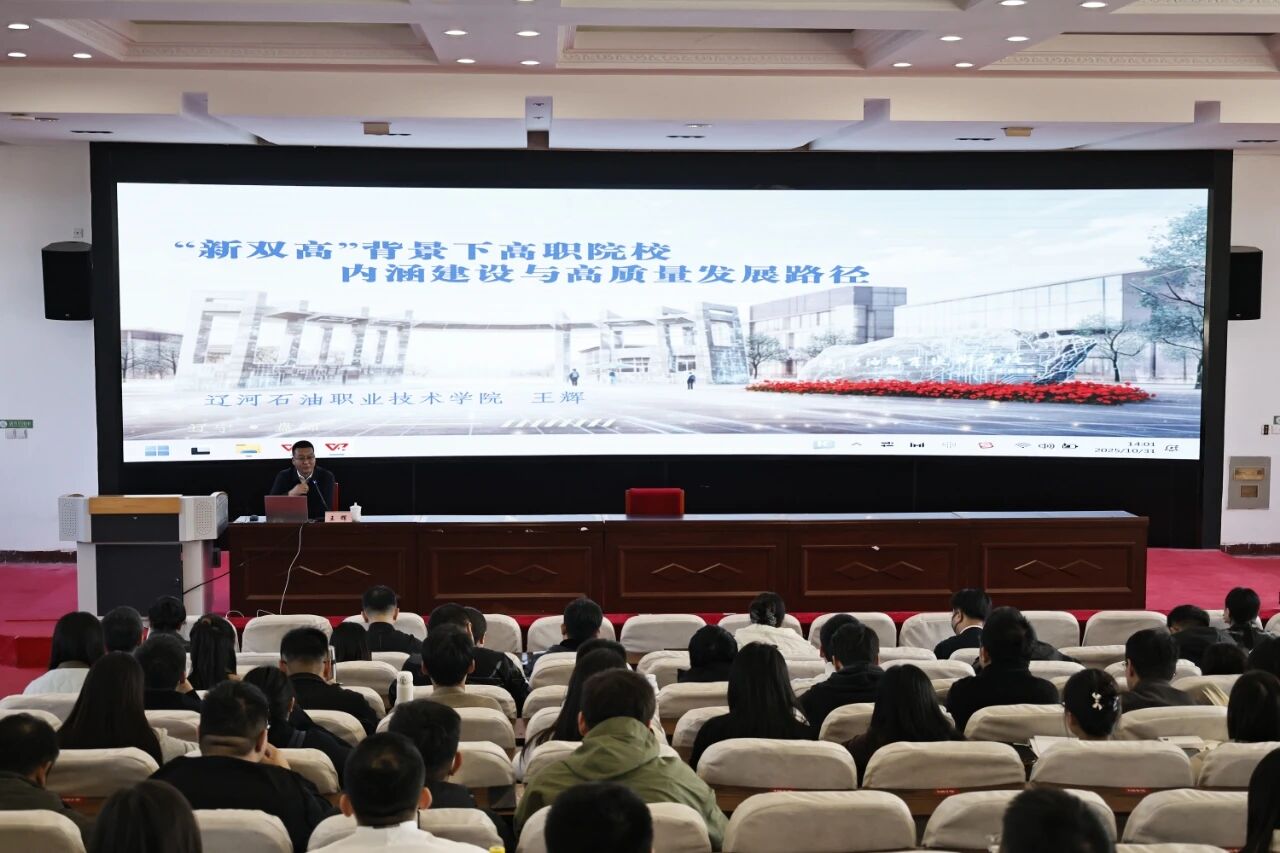 为精准把握“新双高”计划核心要义,破解高职院校内涵建设痛点难点,10月31日,辽河石油职业技术学院举办“新双高”背景下高职院校高质量发展专题讲座,学院副院长王辉教授主讲,共同探讨高质量发展新路径。人事处负责人杨雪主持专题讲座,学院全体教职工参加了此次专题讲座。