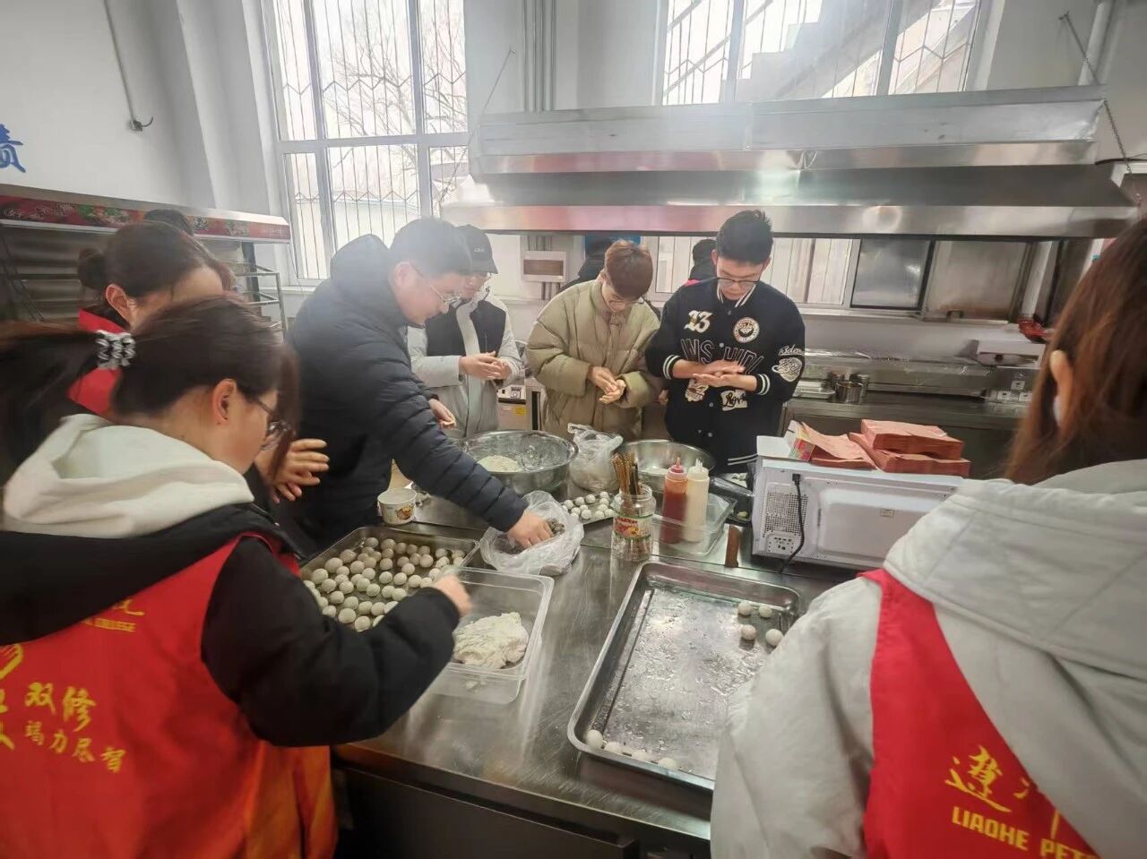 制作完成后,食堂师傅们立刻将这些满载心意的元宵下锅烹煮。与此同时,学院师生志愿者们化身“暖心使者”,将刚出锅的热乎元宵精心分装,送到食堂就餐的学生手中。热气腾腾的元宵,搭配着暖心的节日问候,让未能亲手参与制作的同学也能共享这份甜蜜与温情。