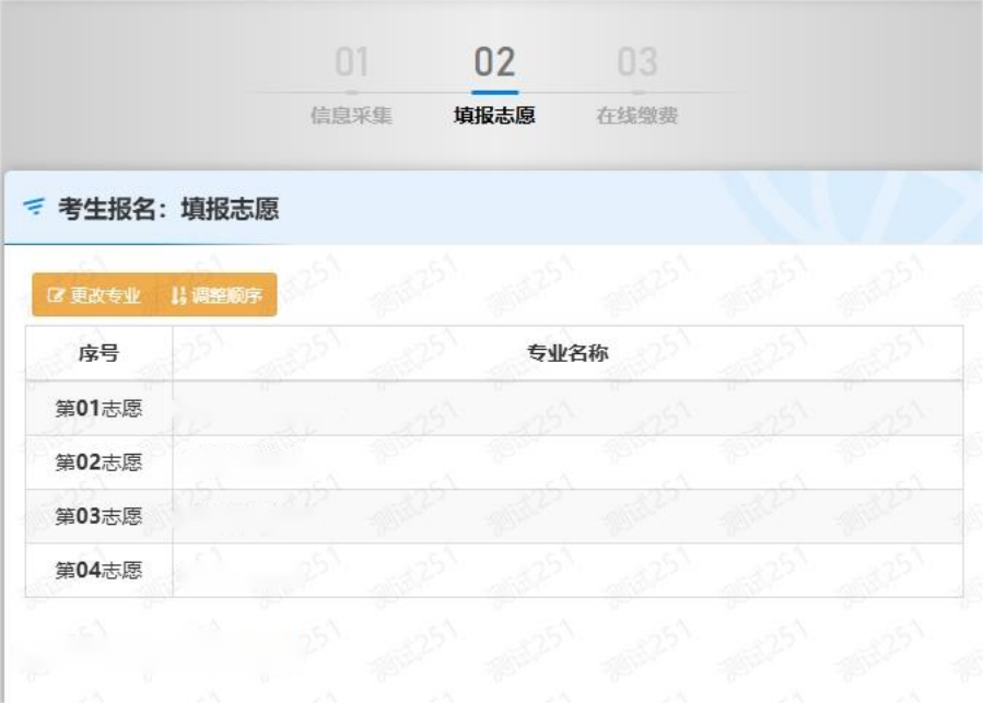考生提交采集信息后,页面自动跳转到填报志愿页面。