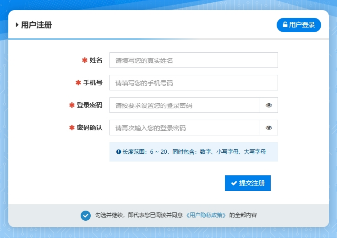 已注册账号的考生可直接填写登录账号及密码,点击“提交登录”即可。