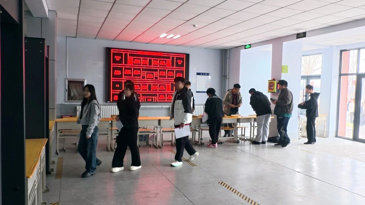 考试当天,各部门分工协作、高效运转。学院在北门设置助学贷款政策宣传展板,为考生和家长讲解资助政策;开辟专用考试通道,沿路安排志愿者引导考生有序入场;考场内严格执行安检流程,监考教师认真核验考生身份,考场秩序井然。学院同步做好后勤保障和应急安全工作,为考生营造了安全、舒心的考试环境。